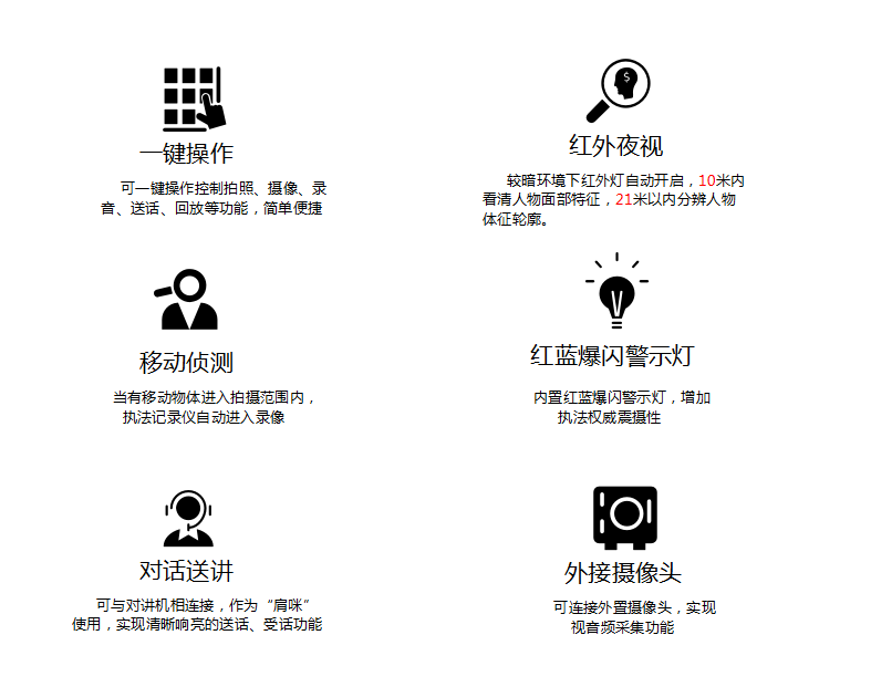 K8凯发国际K8DSJ-200F 执法仪(法院/政府/城管)拍摄像素高达5000万,广角镜头137,拍摄画面精细而全面,大容量电池支持陆续在工作12小时不断电